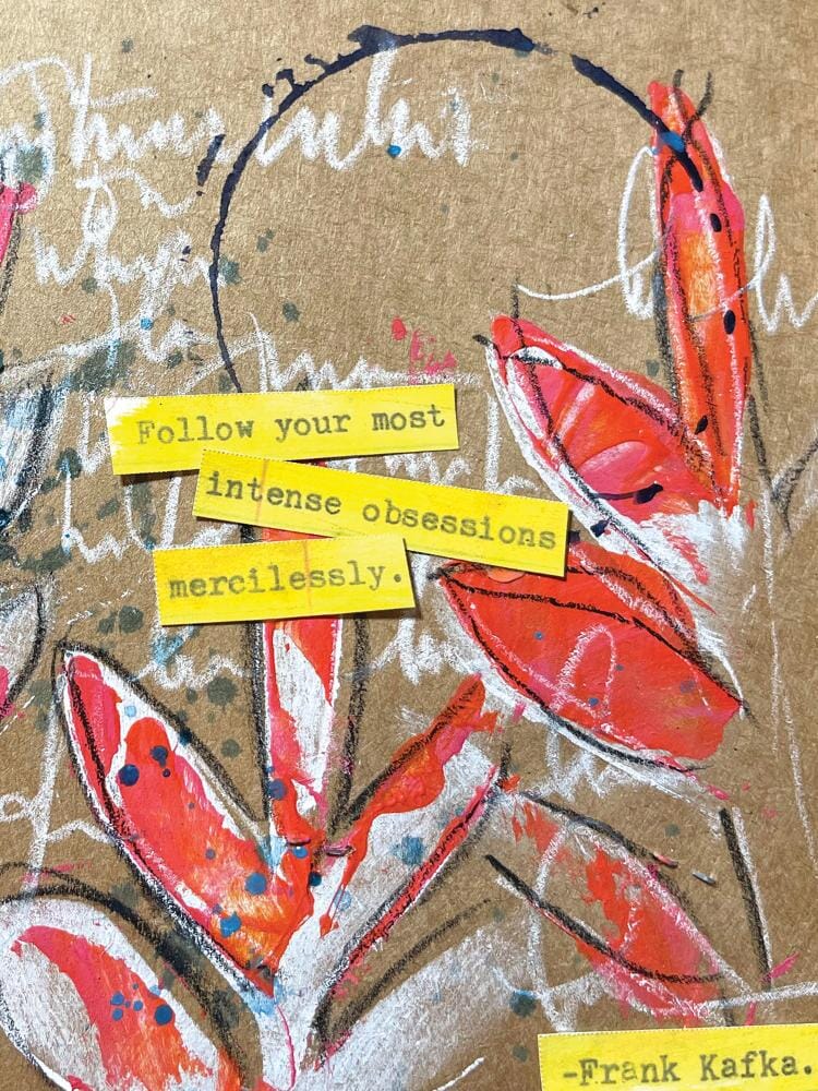 Simply cut out the phrases you want for your project and adhere with Dina Wakley MEdia Gel Medium.